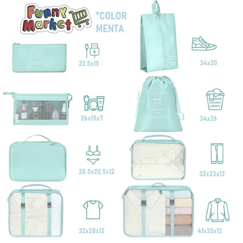 Prepárate para tus aventuras con este completo set de bolsos para maleta. ¡Podrás guardar todo todito todo y tenerlo organizado 🌍