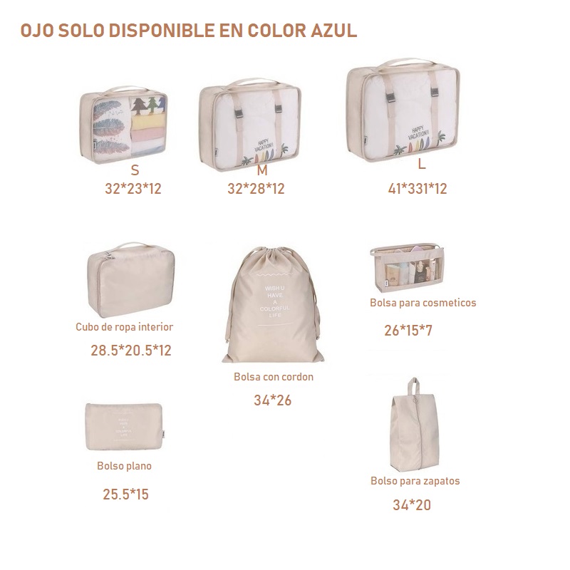 Set de 8 bolsas organizadoras para equipaje, perfectos para ordenar y organizar nuestra ropa y accesorios dentro de nuestra maleta, son súper útiles!!