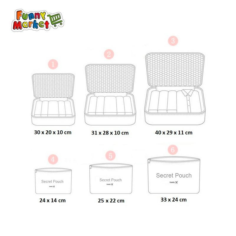 Set x 6 bolsas organizadoras para equipaje, perfectos para ordenar y organizar nuestra ropa y accesorios dentro de nuestra maleta, son demasiado útiles!!